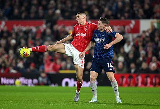 Ведущий борьбу за выживание "Ноттингем Форест" принимал "Арсенал", набравший чемпионский темп. В стартовый отрезок матча была примерно равная игра, лишь угловые "канониров" несли в себе угрозу: Мадуэке и Райс закручивали мяч в створ — в первом случае получилось неточно, а во втором — Селс был начеку. После ещё одного углового удар Мадуэке с подбора заблокировали, а замыкавший дальний угол вратарской после отскока Мартинелли немного не попал в створ. Хозяева также проявили себя в атаке: Хадсон-Одои едва не получил выход один на один с голкипером — Райя вышел за пределы штрафной и выбил мяч в поле. Ещё один выход Райя предотвратил прорыв Жезуса по левому флангу. После перерыва Артета пытался усилить игру с помощью замен. Райс имел шанс вывести гостей вперёд, пробив в касание из пределов штрафной, но Селс отбил мяч в сторону. А чуть позже голкипер "Ноттингем Форест" совершил классный сейв, достав мяч из угла после удара головой в исполнении Сака. Лондонцы наращивали давление, не желая мириться с потерей очков. Однако хозяева надёжно играли в обороне и не позволяли сопернику развернуться. На табло так и остались гореть нули. "Арсенал" упустил возможность увеличить отрыв от "Манчестер Сити" до девяти очков.