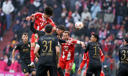 Любопытно, что фаворит мог удвоить счет почти сразу после того, как открыл счет. Диас пробежался по левому флангу, после чего к дальней стойке забросил, Карл пробил, казалось, точно быть голу, но не хватило точности восходящей звезде немецкого футбола. Далее вновь под прицелы камер попал Диас. Из-под Чавеса удалось колумбийцу пробить в ближний угол, только вот вратарь перевел на угловой. Корнер в исполнении Олисе ни к чему значимому не привел, зато Девис, немного погодя, пасанул хорошо к Диасу, тот влетел в чужую штрафную, вратарь пошел на перехват. Луис попал коленом по лицу Дамену. Злого умысла не было, но боль из-за этого никуда не улетучилась, пришлось врачам вступать в игру, оказывать помощь пострадавшему футболисту. Сумел продолжить бой кипер, даже кровь ему пришлось останавливать. Клод-Морис неплохо взаимодействовал с Яннулисом, в целом гости начинали выглядеть поживее, однако проблем Урбигу они все еще не доставляли. Главный арбитр Экснер компенсировал три минуты к основному времени тайма. Увидели мы тут опасный момент. Немного расслабились хозяева перед наступлением небольшого отдыха, этим воспользовался Массенго, который удачно сыграл на Фелльхауэра. Робин с острого угла по цели зарядил, но "снаряд" сотряс перекладину, голкипер бы здесь не спас, так что банально фартануло мюнхенцам. Минимально вела "Бавария", ну, это лучше, чем первой пропускать, как было в предыдущих дуэлях Бундеслиги. Вопрос, не могло ли это боком выйти гегемону? "Фуггеры" особо вперед не вылезали, но вполне могли под занавес противостояния какой-нибудь шальной гол организовать. Так что Компани должен был настроить своих ребят, чтобы они еще забили для подстраховки. Кейн вообще словно на поле не присутствовал, должен был Харри себя проявить в дальнейшем, хотя с